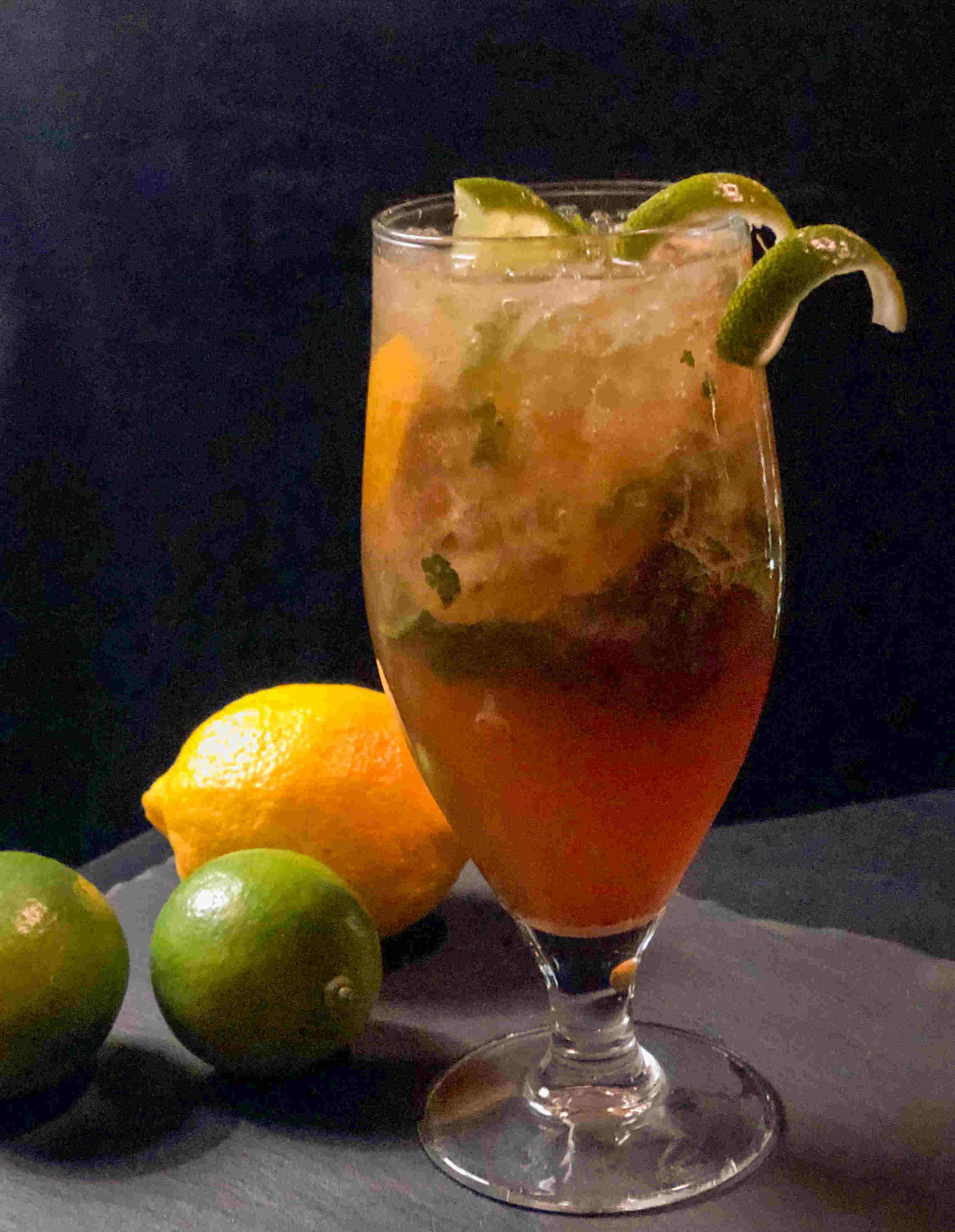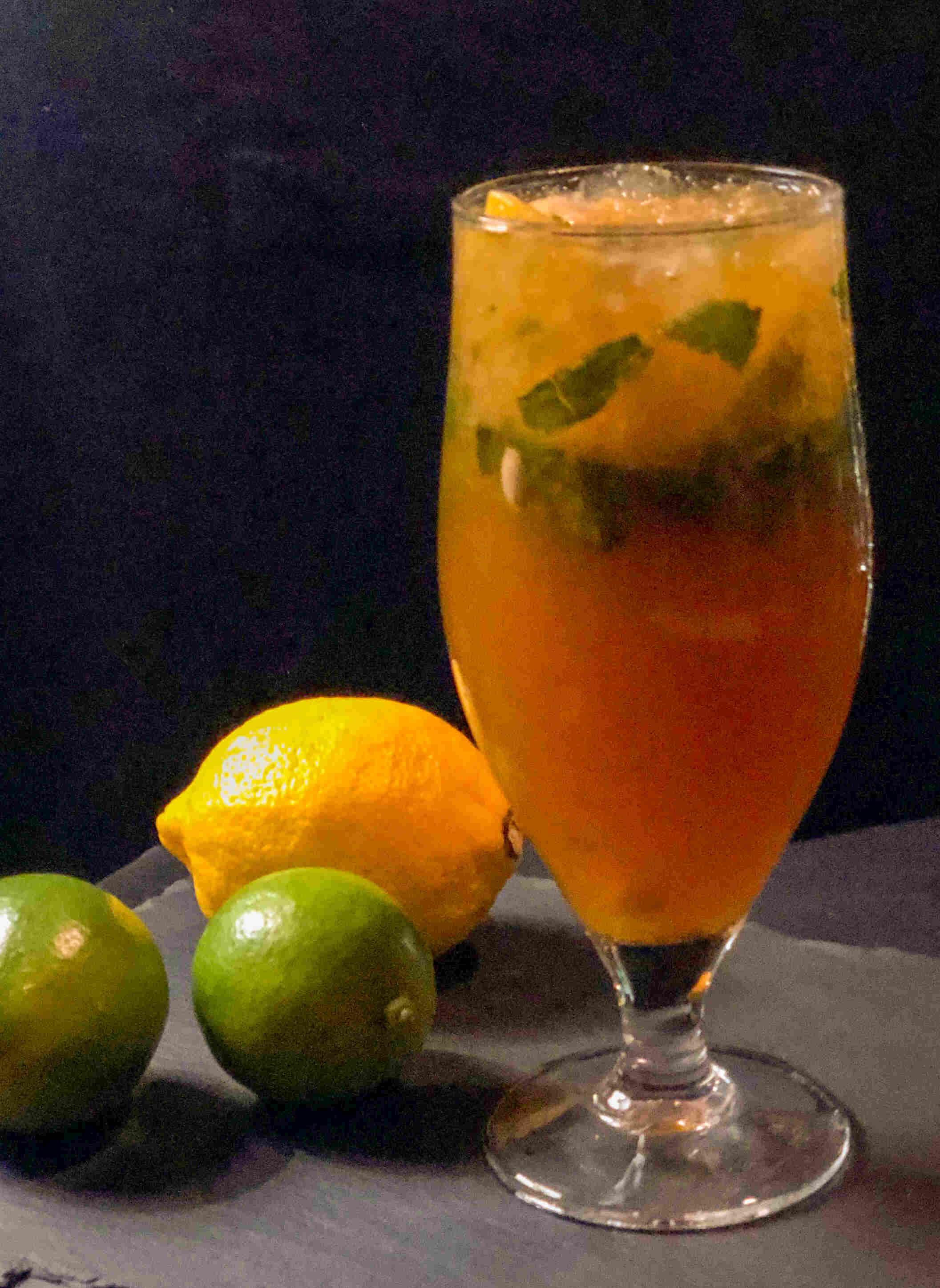 fresh lime juice, fresh lime fruits, sugar, mint leaves, club soda, passion fruit served over crushed ice