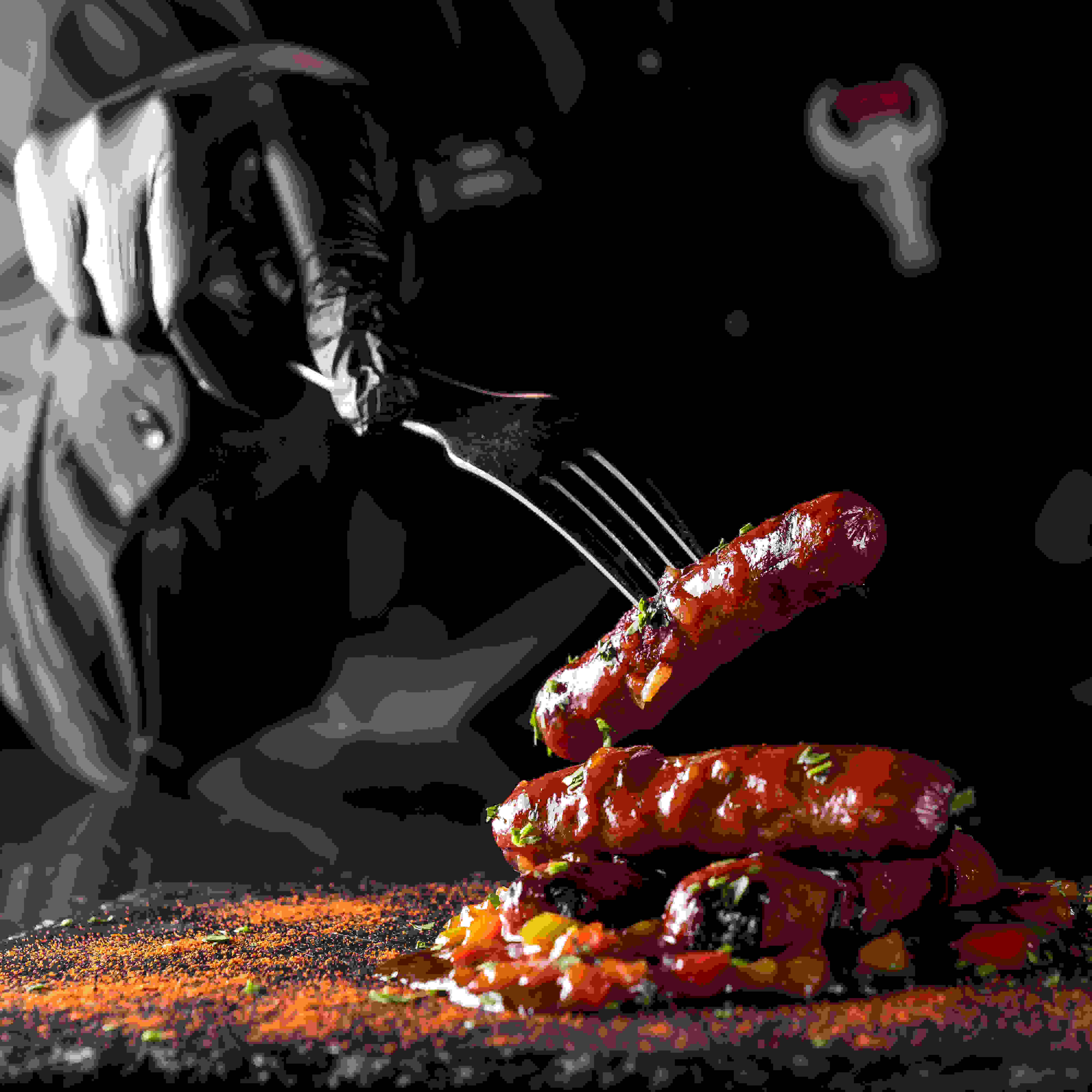 سجق مشوي متبل مع الطماطم الحارة المشوية