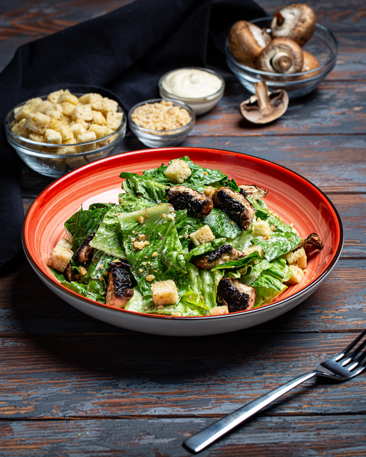 Fine choice of romaine lettuce mix with vegan homemade dressing, topped with fine walnuts and homemade croutons Add On: Grilled Portobello Mushroom 9qr/ Pan fried Vegan Tofu 15qr